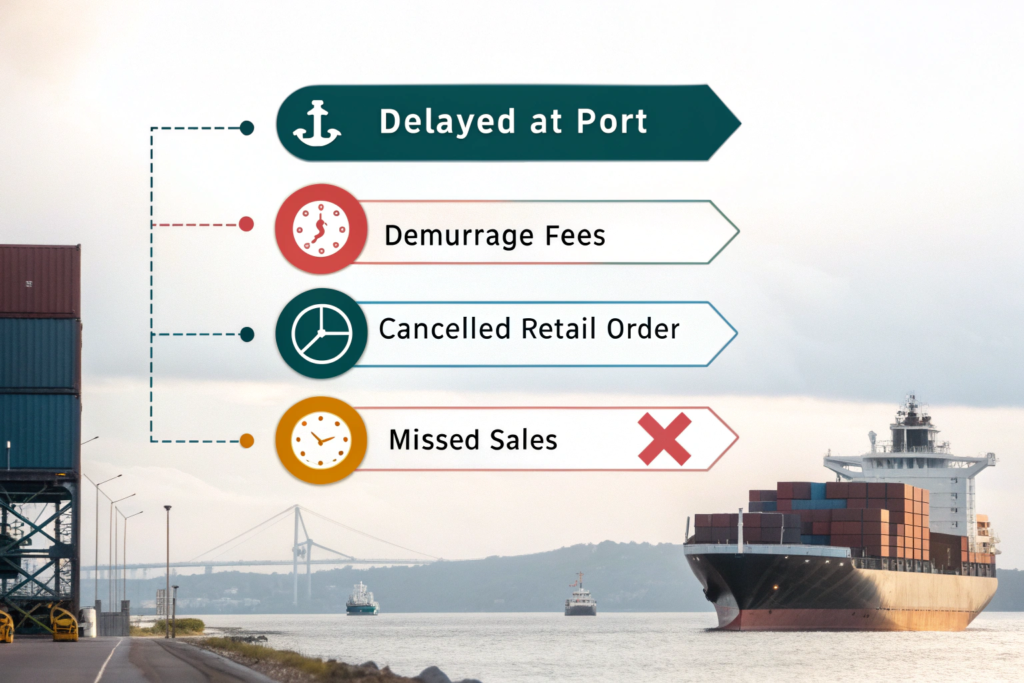 Customs delays directly impact your bottom line through a toxic combination of punitive fees and lost revenue. As your container sits idle, it begins to accrue daily "demurrage" and "detention" fees from the port and the shipping line. Simultaneously, the delay means your products are not on shelves or available online, resulting in zero sales revenue during your peak launch window. This combination of rapidly increasing costs and a complete halt in revenue can completely erode, and even reverse, the profitability of your entire shipment.