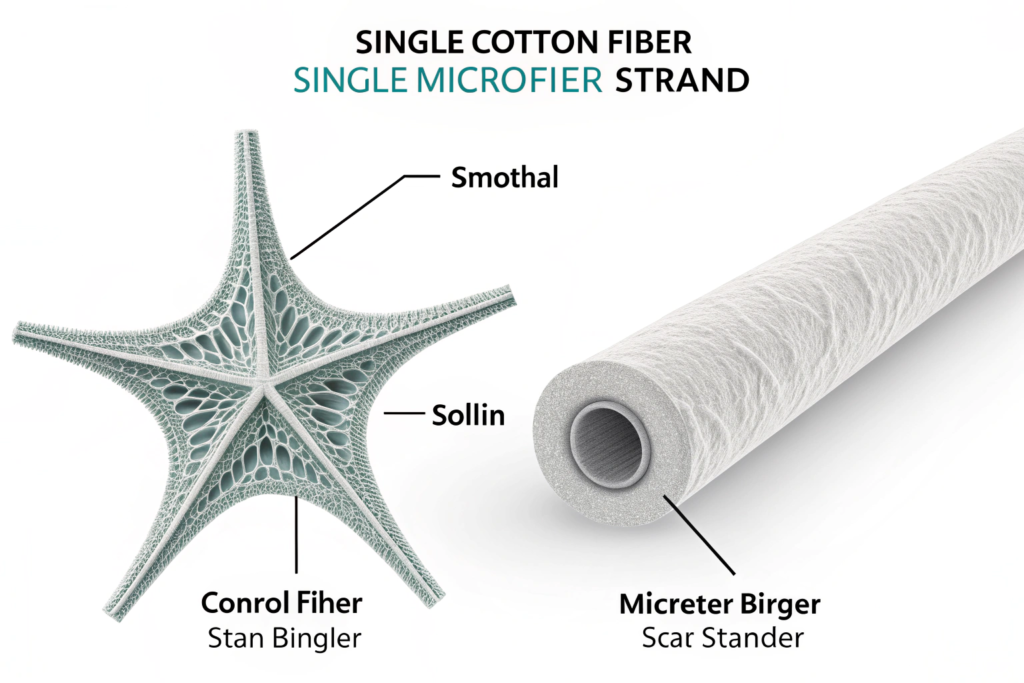 • Ultra-Fine Fibers: Microfiber is defined as a fiber with a denier of less than 1.0. Denier is a measure of a fiber's fineness; for comparison, a human hair is about 20 denier and a strand of silk is about 8 denier. This extreme fineness allows microfiber to reach into microscopic pores and crevices on a surface that a thick cotton fiber would simply glide over.