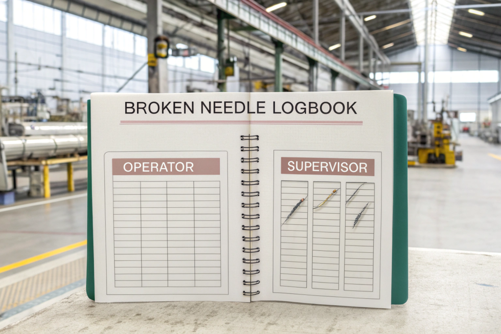 What happens when a needle breaks? A professional factory has a strict, written procedure that every sewing machine operator is trained on. It typically involves:
